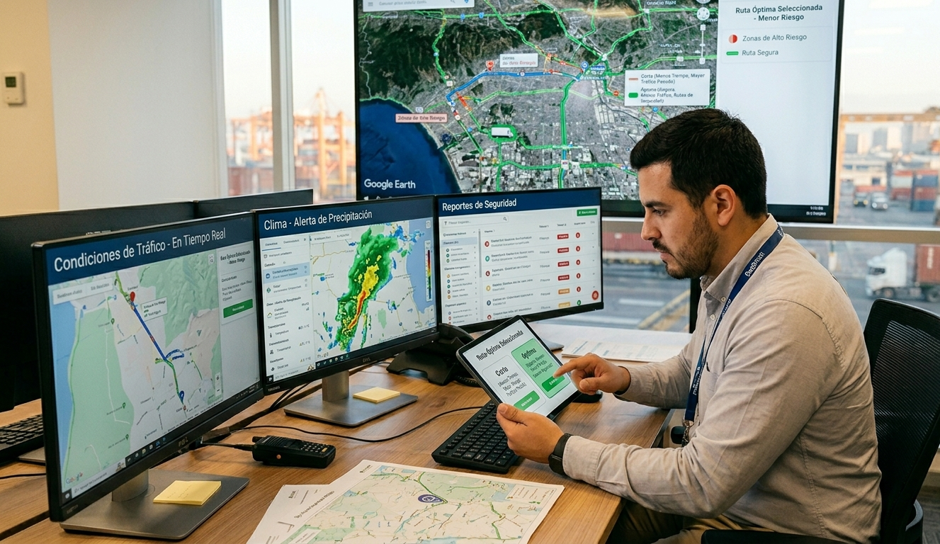 • Rutas Basadas en Datos: Antes de la salida, el monitorista valida condiciones de tráfico,