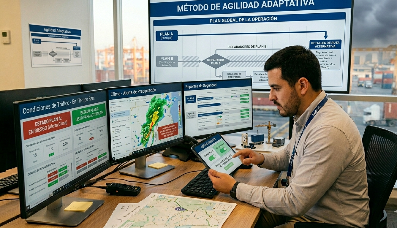 fallas mecánicas menores o cambios de última hora en el destino del cliente. • Célula de Respuesta Rápida: Capacidad de re-enrutar una unidad o realizar un transbordo eficiente si la cadena de suministro del cliente sufre una urgencia (fletes "spot" de alta prioridad). |